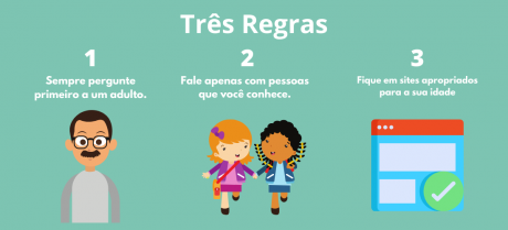 Diga: Na internet, além de brincar e se comunicar, também podemos aprender muita coisa nova e isso é muito legal. Mas sempre devemos tomar cuidado e lembrar das três regrinhas, ok?