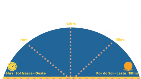 Apresente a imagem abaixo e explique que ao se “mover” no céus (segundo a nossa perspectiva) o sol pode ser utilizado como marcador de horário, pois tem movimentos pré-definidos e previsíveis.