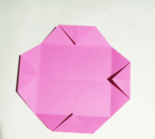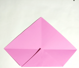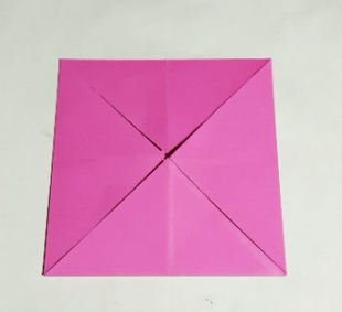 Recorte um quadrado de 21cm. Dobre na diagonal, desdobre e dobre na outra diagonal.