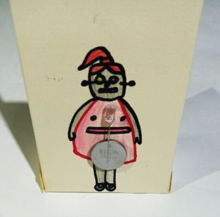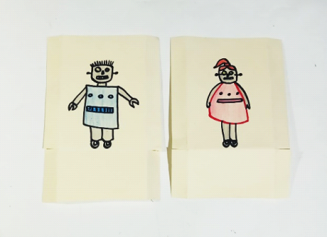 Dobre 3 cm na parte debaixo e 1 cm em cada lateral, isso para demarcar o local para o desenho. Depois faça o desenho de um casal de robôs e pinte-os.