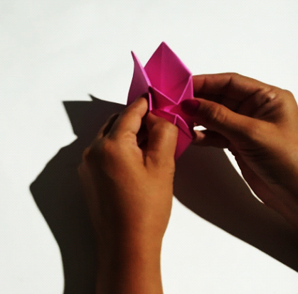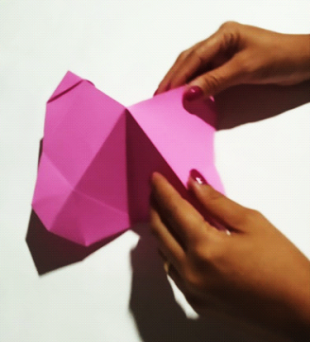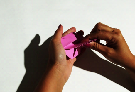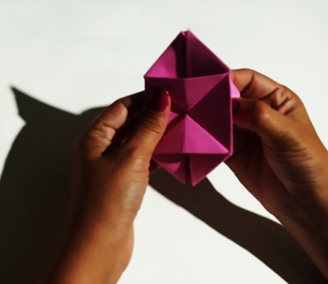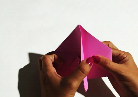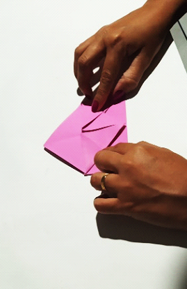 Vire o papel e forme um “triângulo” impulsionando a parte das laterais para dentro.