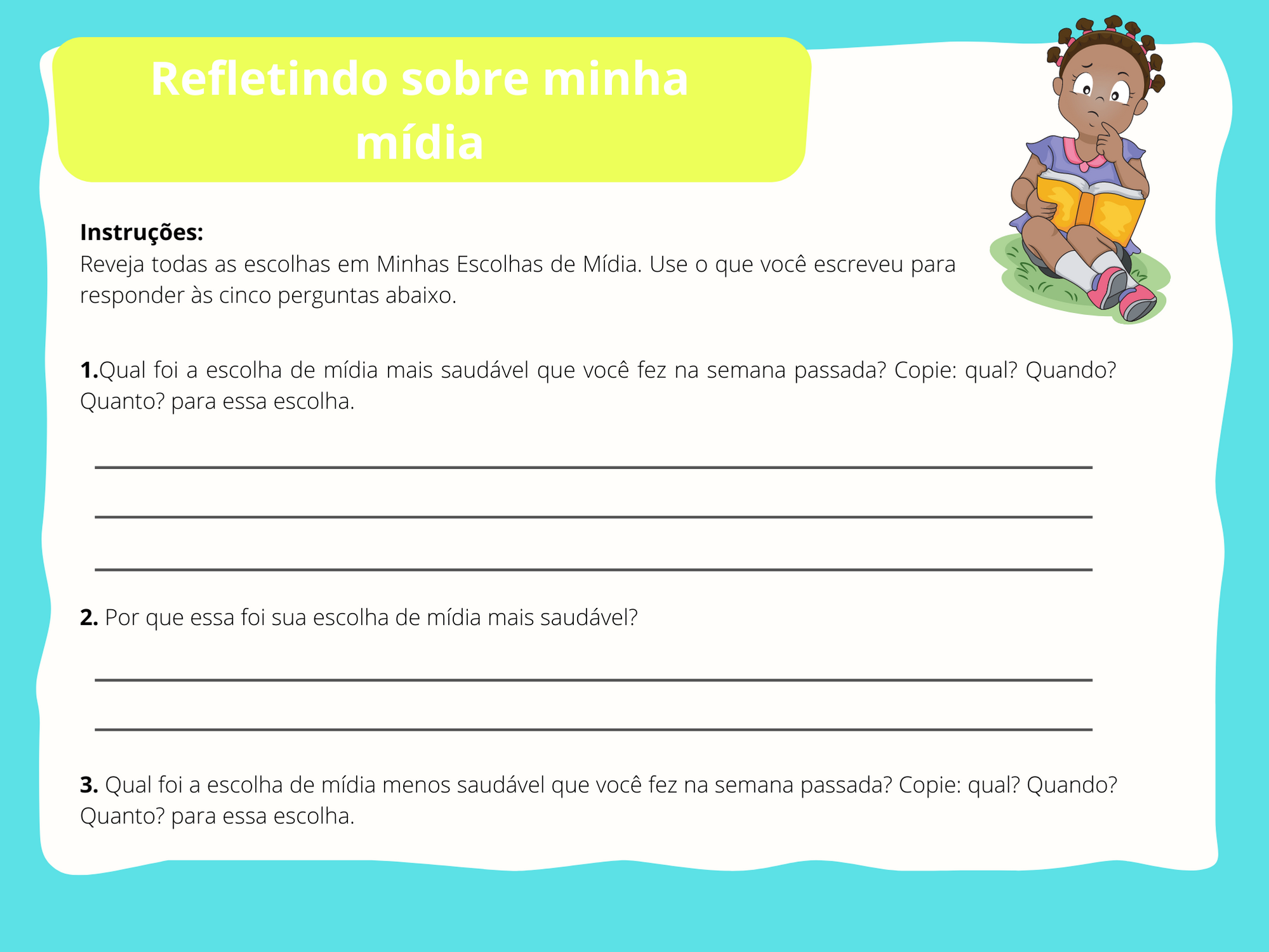 Orientações: Finalize a aula realizando novamente o questionamento: O que torna uma escolha de mídia saudável?
