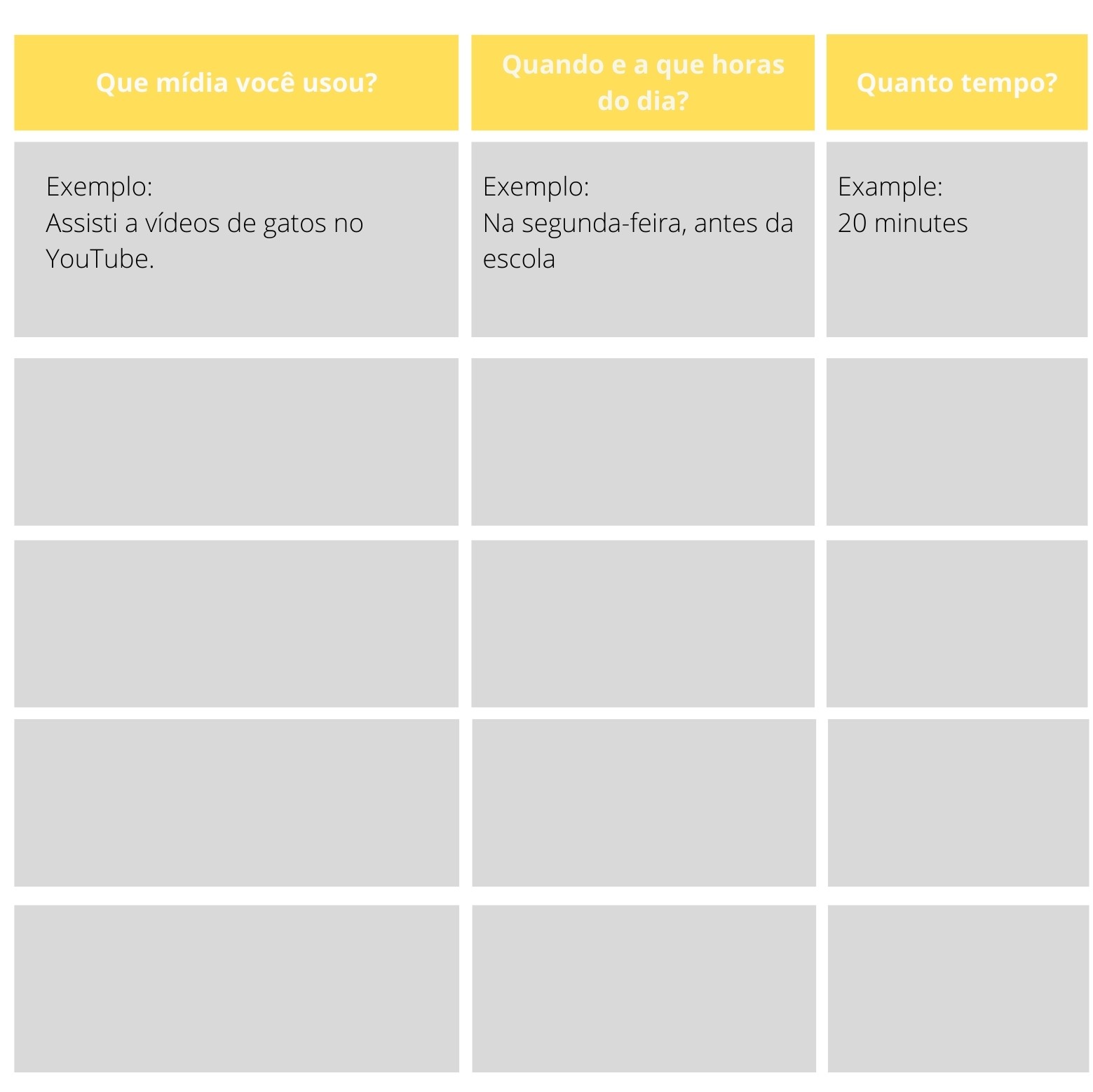 - Aprender o tópico “Qual? Quando? Quanto?” estrutura para descrever suas escolhas de mídia.