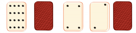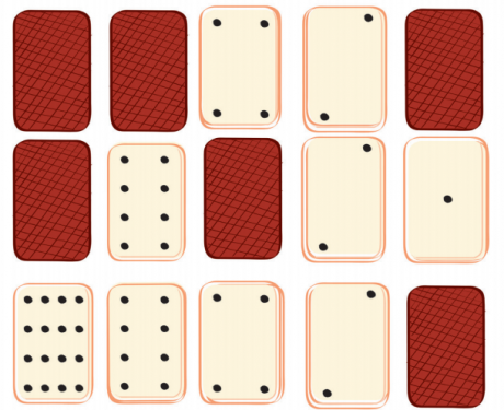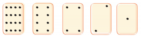 Para esta atividade precisaremos de um conjunto de cinco cartas de tamanho A4 ou maior para que toda a classe possa observá-las facilmente. Cada cartão possui um ou mais pontos em um lado e nada no verso, conforme mostrado na figura a seguir: