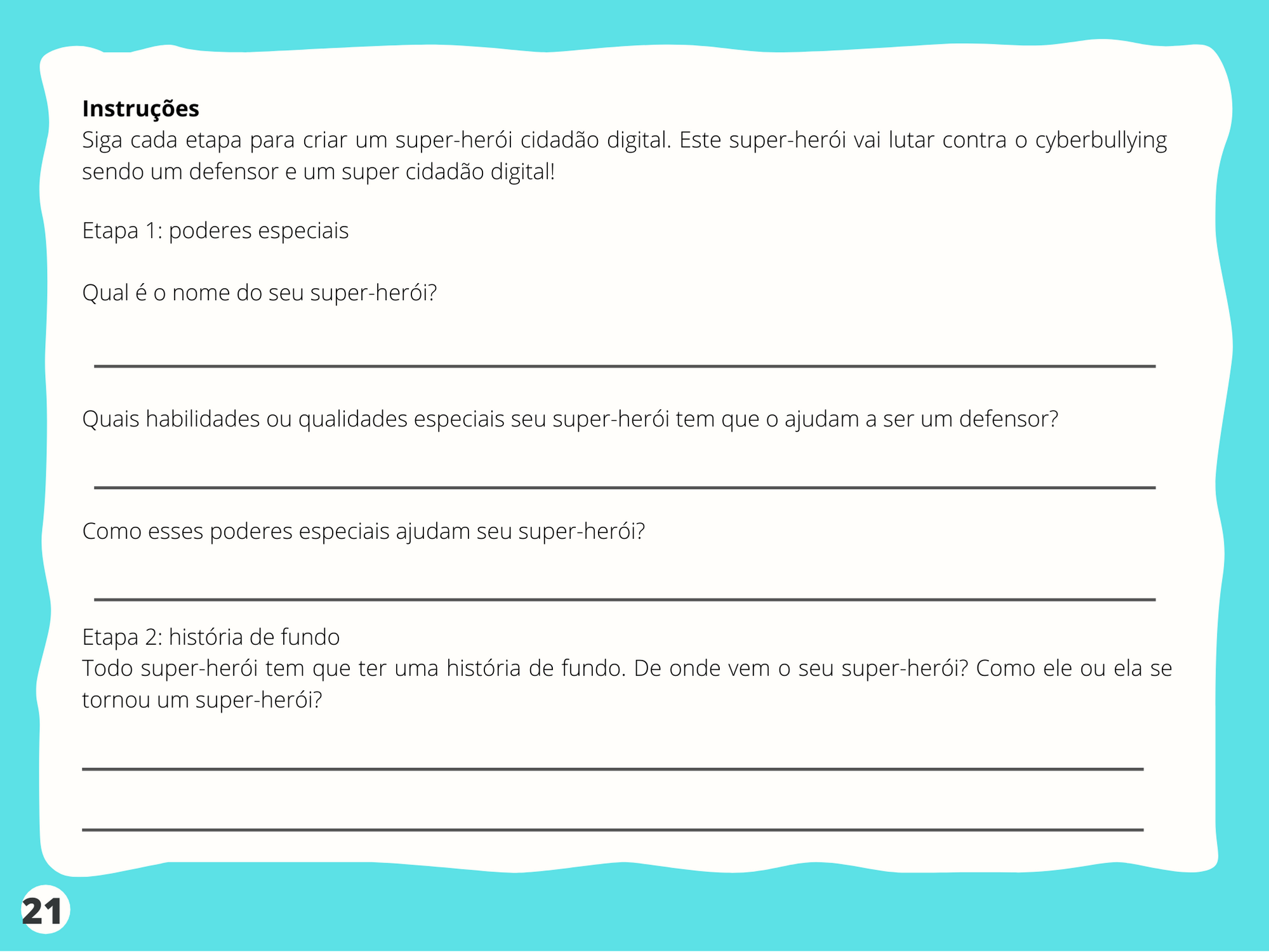 - Mostrar maneiras de ser um defensor criando uma história em quadrinhos de super-heróis de cidadania digital.